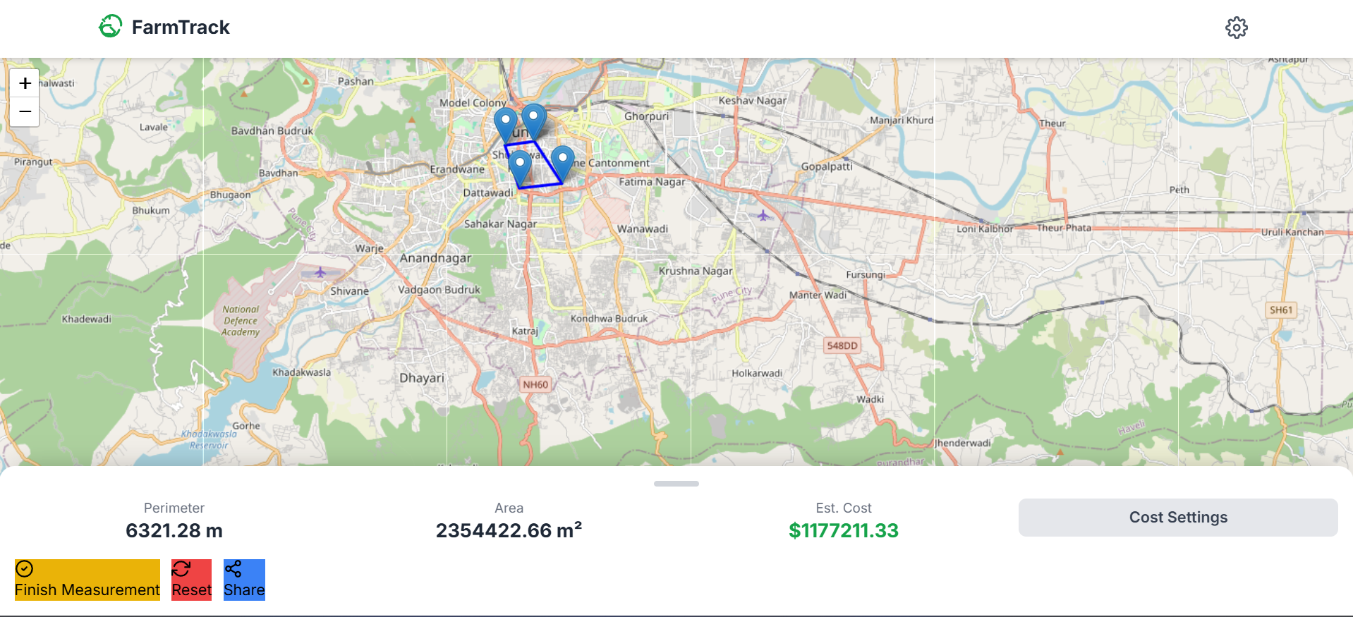 Developed a GPS-based PWA to measure farm boundaries and estimate costs for fencing, seeds, and irrigation. Enabled offline access with Service Workers and multi-language support for rural users.
